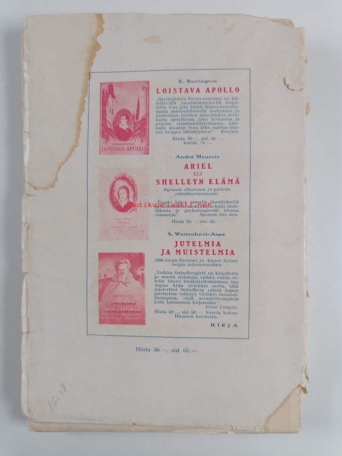 Huonokuntoinen (lukukelpoinen). Repeämää kansissa, pientä kulumaa kansissa, läikkää kansissa. kannet irti, pienoista tahraisuutta muutamalla sivulla