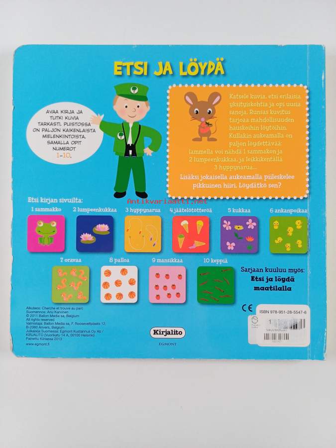 Muu(t) tekijä(t): Anu KarvinenAsiasanat: lastenkirjallisuus, puistot, etsintä, laskeminen, kuvakirjat, paksulehtiset kirjat