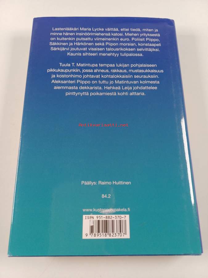 Erinomainen. Tarkempi kuntoluokka: K4- ; Pienoista kulumaa reunoilla ja kulmissa, takana hintalapun jäämää. Kansipaperin kunto: pienoista kulumaa reunoilla, muuten erinomainen