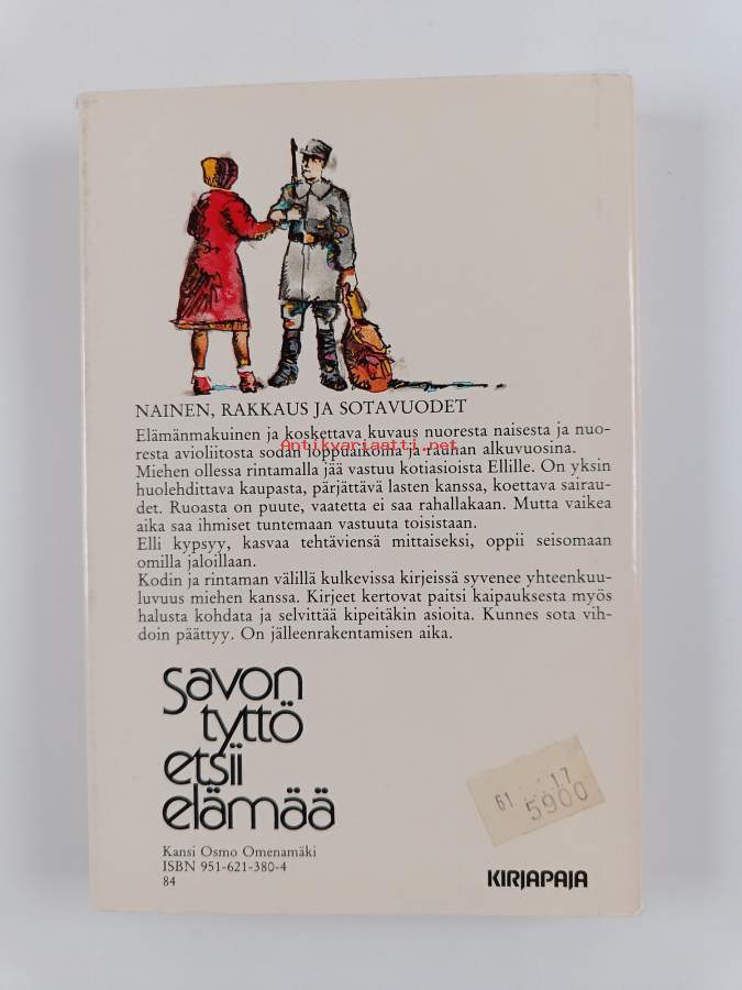 Erinomainen. Tarkempi kuntoluokka: K4- ; Pienoista nuhruisuutta takakannessa, takana vanha hintalappu. Kansipaperin kunto: jonkin verran kulumaa/pienoisia repeämiä