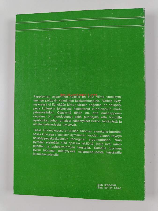 Nainen ja pappisvirka : argumentaatioanalyysi Suomen evankelis-luterilaisessa kirkossa käydystä naispappeuskeskustelusta