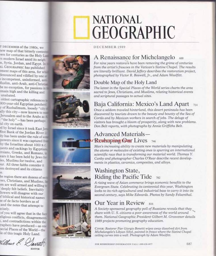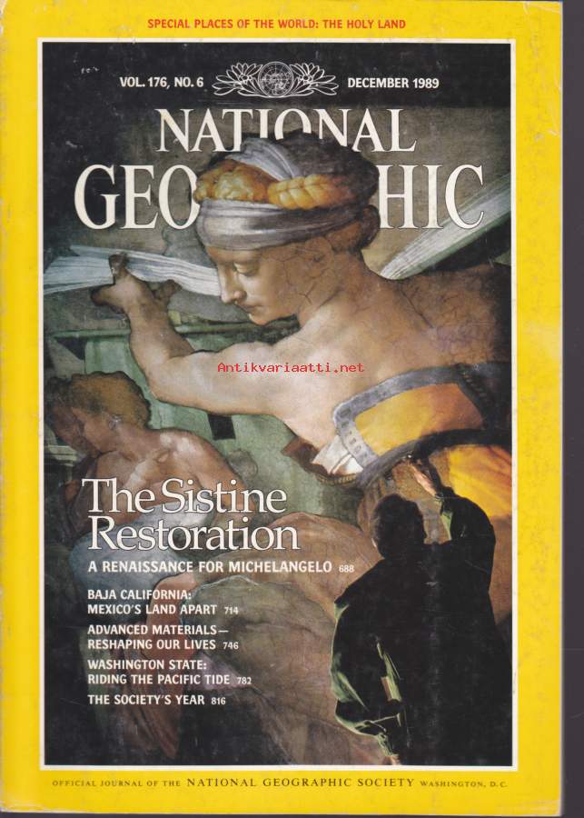 National Geographic - December 1989. The Sistine Restoration. Baja California. Washington State.