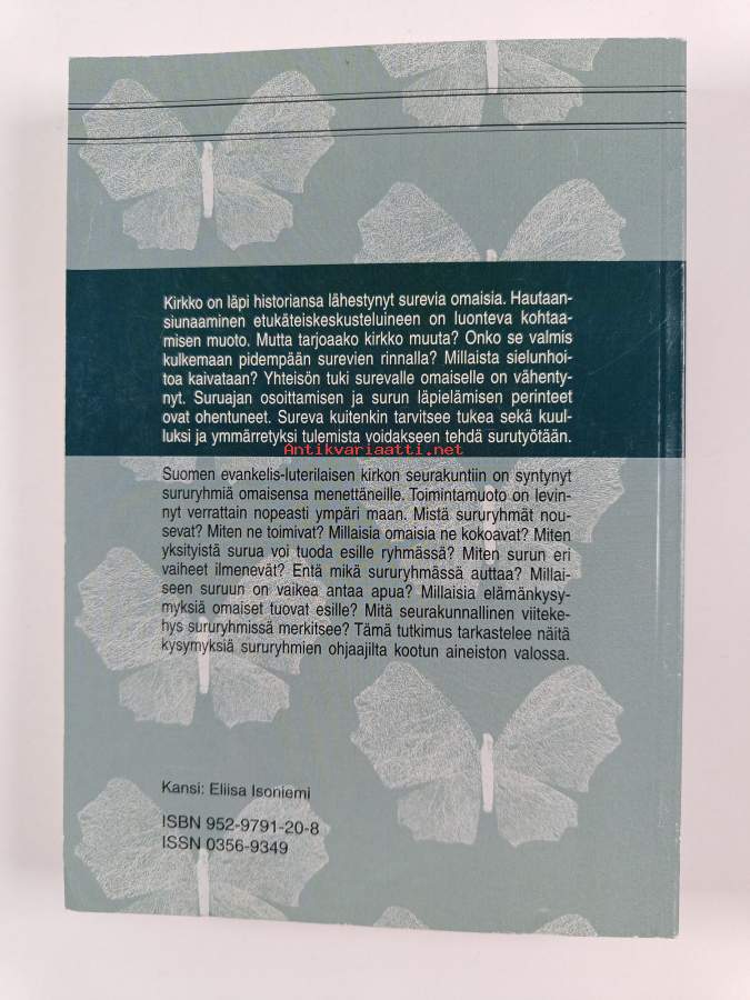 Sarja: Suomalaisen teologisen kirjallisuusseuran julkaisuja 207Asiasanat: seurakuntatyö, sielunhoito, kuolema, väitöskirjat, suru, surutyö, evankelis-luterilainen kirkko, masennus, hautajaiset, hoitotiede, teologia, ryhmät, sisällönanalyysi, viha, ryhmäterapia, hautaus, pastoraalipsykologia, kirkko (instituutio), kyselytutkimus, esimerkit