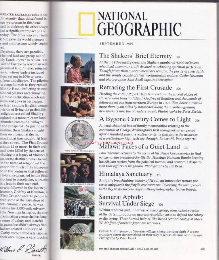National Geographic - September 1989. Retracing the First Crusade. Malawi. Himalaya Sanctuary