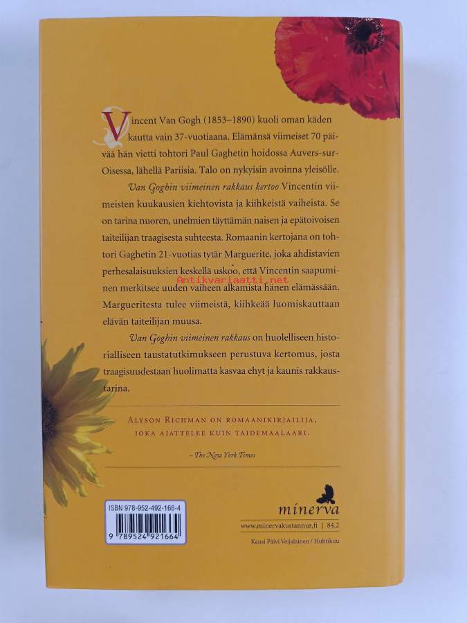 Muu(t) tekijä(t): Minna PenttinenAlkuteos: The last Van GoghAsiasanat: taidemaalarit, lääkärit, isät, kylät, mallit, muusat, kielletty rakkaus, perhesalaisuudet, taiteilijaromaanit, historialliset rakkausromaanit