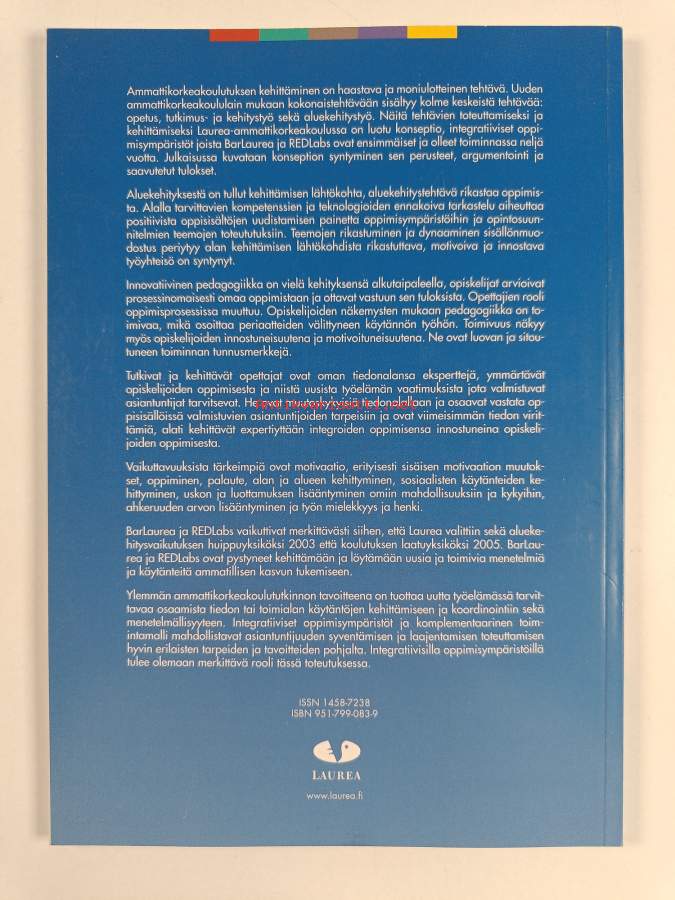 Muu(t) tekijä(t): Rauno PirinenMerkinnät: omistajamerkintäSarja: Laurea-ammattikorkeakoulun julkaisusarja. B 10Asiasanat: koulutus, kehittäminen, opetus, suunnittelu, oppiminen, projektit, oppimisympäristö, osaaminen, ammattikorkeakoulut, asiantuntijuus, kehittämisprojektit, tutkiva oppiminen, tutkimus- ja kehittämistoiminta, fenomenografia