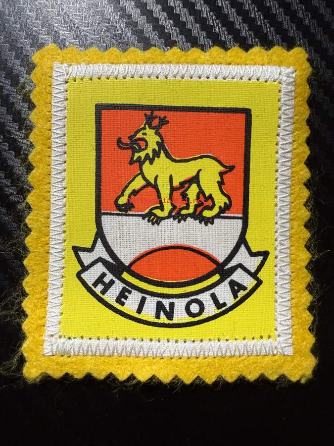 Heinola -kangasmerkki / matkailumerkki / hihamerkki / badge -pohjaväri keltainen