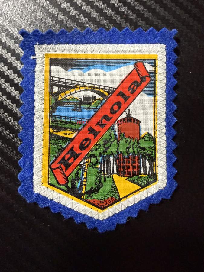 Heinola -kangasmerkki / matkailumerkki / hihamerkki / badge -pohjaväri sininen