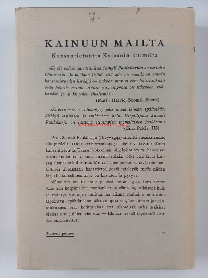 Samuli Paulaharju -paketti (5 kirjaa) : Härmän aukeilta ; Kainuun mailta ; Taka-Lappia ; Rintakyliä ja Larvamaita ; Kiveliöitten kansaa