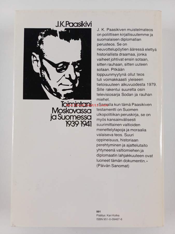 Kirjamainos - Paasikiven muistelmia- Muistelmia sortovuosilta/Toimintani Moskovassa ja Suomessa 1939 - 41