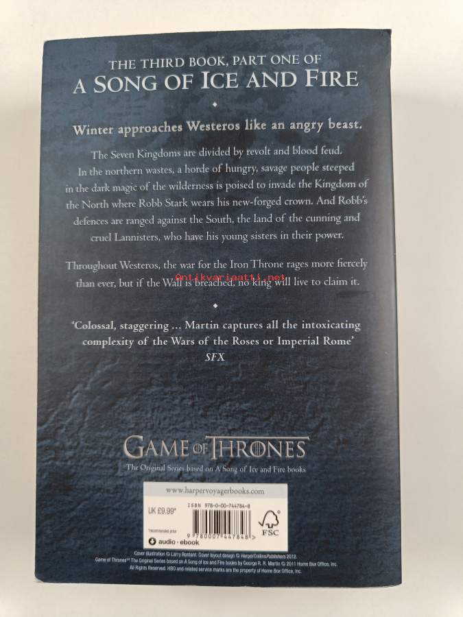Sarja: A storm of swords Part one; A song of ice and fire book 3Asiasanat: game of thrones