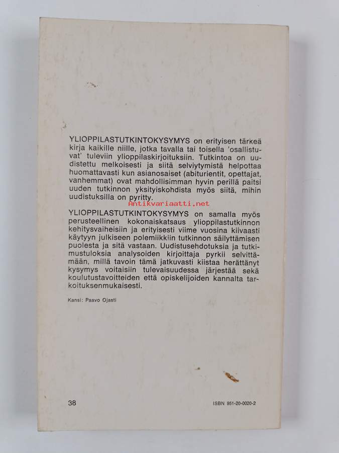 Hyvä. Tarkempi kuntoluokka: K3+ ; Hieman nuhruisuutta kansissa, arvosteltavaksi/näytekappale-leima, selkämyksessä lukutaittumaa, selkämyksessä aavistus vinoutta