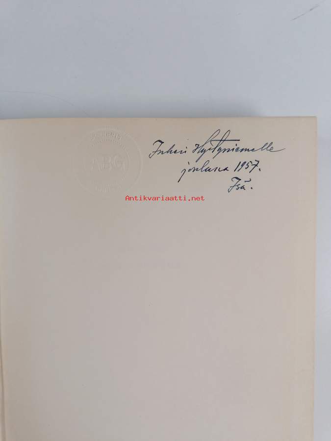 Tyydyttävä. Tarkempi kuntoluokka: K2+ ; Pienoista tahraisuutta, hieman kulumaa, selkämyksessä hieman vinoutta. exlibris leima