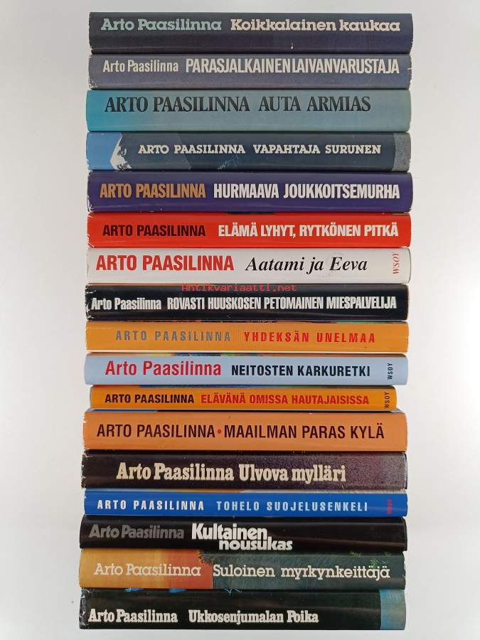 Arto Paasilinna -paketti (17 kirjaa) : Koikkalainen kaukaa ; Parasjalkainen laivanvarustaja ; Auta armias ; Vapahtaja Surunen ; Hurmaava joukkoitsemurha ; Elämä l...