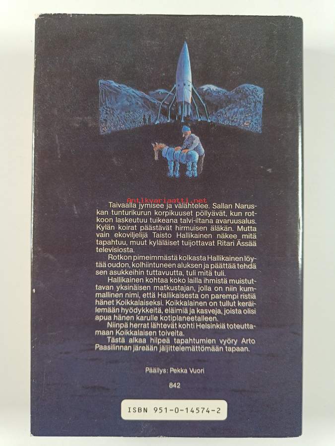 Koko nimi: Arto Paasilinna -paketti (17 kirjaa) : Koikkalainen kaukaa ; Parasjalkainen laivanvarustaja ; Auta armias ; Vapahtaja Surunen ; Hurmaava joukkoitsemurha ; Elämä lyhyt, Rytkönen pitkä ; Aatami ja Eeva ; Rovasti Huuskosen petomainen miespalvelija ; Yhdeksän unelmaa ; Neitosten karkuretki ; Elävänä omissa hautajaisissa ; Maailman paras kylä ; Ulvova mylläri ; Tohelo suojelusenkeli ; Kultainen nousukas ; Suloinen myrkynkeittäjä ; Ukkosenjumalan poikaMerkinnät: omistajamerkintä