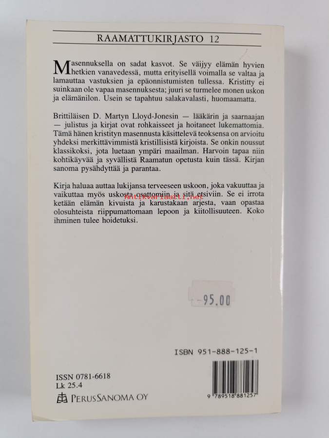 Muu(t) tekijä(t): Heljä MeuronenSarja: Raamattukirjasto 12Alkuteos: Spiritual depression : its causes and cureAsiasanat: uskonelämä, masennus, saarnat