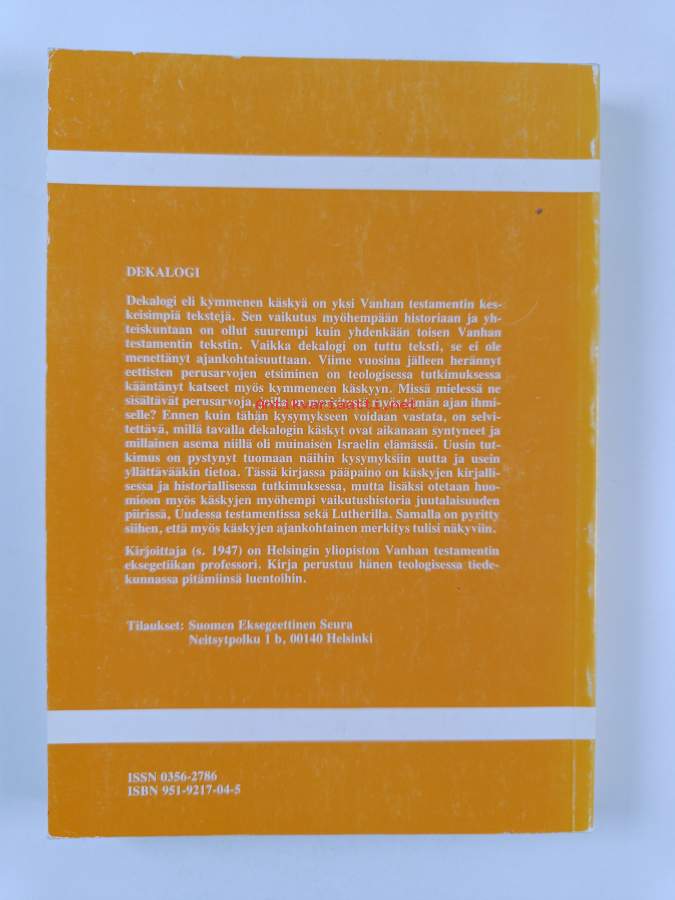 Sarja: Suomen eksegeettisen seuran julkaisuja 49Asiasanat: juutalaisuus, eksegetiikka, kristillinen etiikka, käskyt