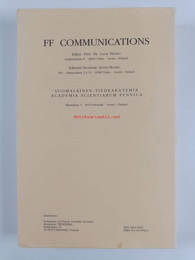 Muu(t) tekijä(t): Erich KunzeSarja: FF communications n:o 142Alkuteos: Mordvalaisten muinaisuskoAsiasanat: myytit, uskonnot, kuolema, uhrit, jumalat, kansanusko, uskomukset, suomalais-ugrilaiset kansat, uhraaminen, käsitykset, hautajaiset, kalendaariperinne, riitit, mordvalaiset, Folktro, uppfattningar, myter, kalendertradition, offer, döden, uskonnolliset käsitykset, finsk-ugriska folk, jordfästningar, religioner, gudar, trosföreställningar, riter, mordviner, offrande, religiösa föreställningar, Ural-Altaic tribes, Religion, Primitive