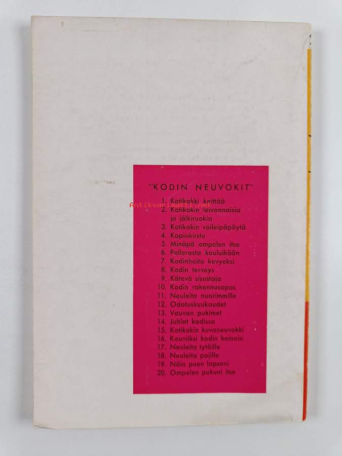 Kodin neuvokit III ompelutyöt, lastenhoito ja terveys; 4 Kapiokirstu, 20 Ompelen pukuni itse, Odotuskuukaudet, 6 Pallerosta koluikään, 8 Kodin terveys