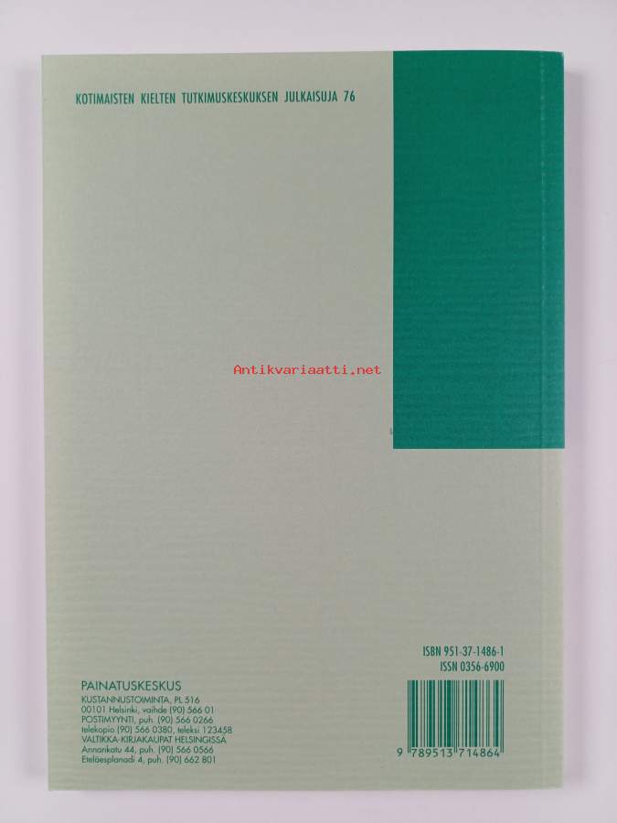 Sarja: Kotimaisten kielten tutkimuskeskuksen julkaisuja 76; Suomen kielen näytteitä 39Asiasanat: suomen kieli, murteet, kielennäytteet, pohjalaismurteet (suomen kieli), finska, dialektologia, språkprov (exempel), dialekter, dialectology, österbottniska dialekter (finska)