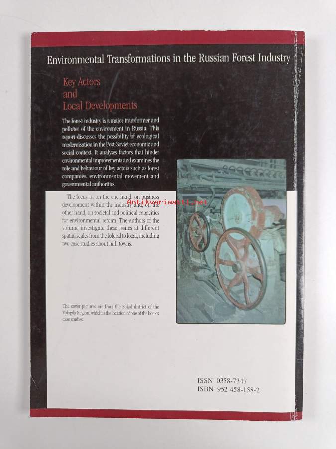 Muu(t) tekijä(t): Jarmo KortelainenSarja: Karjalan tutkimuslaitoksen julkaisuja / Joensuun yliopisto n:o 136Asiasanat: ympäristönsuojelu, metsäteollisuus, ympäristökysymykset, kestävä kehitys, ympäristövaikutukset, ympäristöhallinto, ympäristö, yhteiskunnalliset vaikutukset, paikallishallinto, modernisaatio, miljö, miljöskydd, hållbar utveckling, lokalförvaltning, skogsindustri, miljöeffekter, miljöfrågor, samhälleliga effekter, modernisering, miljöförvaltning