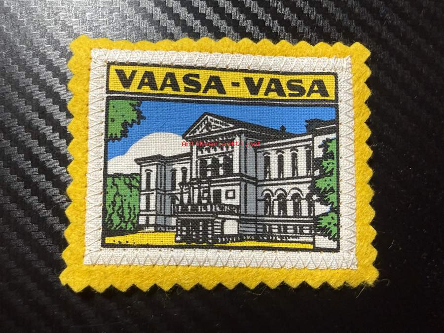 Vaasa - Vasa -kangasmerkki / matkailumerkki / hihamerkki / badge -pohjaväri keltainen