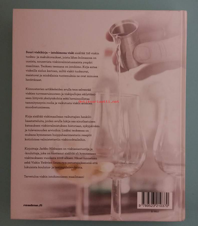 Kirja kuvaa kotimaista ja kansainvälistä viskikulttuuria. Laaja ja runsas viskiarvioiden kokoelma, joka kattaa viskejä useilta eri alueilta, kuten Skotlannista, Yhdysvalloista, Irlannista, Kanadasta, Japanista, Ruotsista ja Suomesta. Dimensiot 26 ¤ 22 cm Kuvitettu