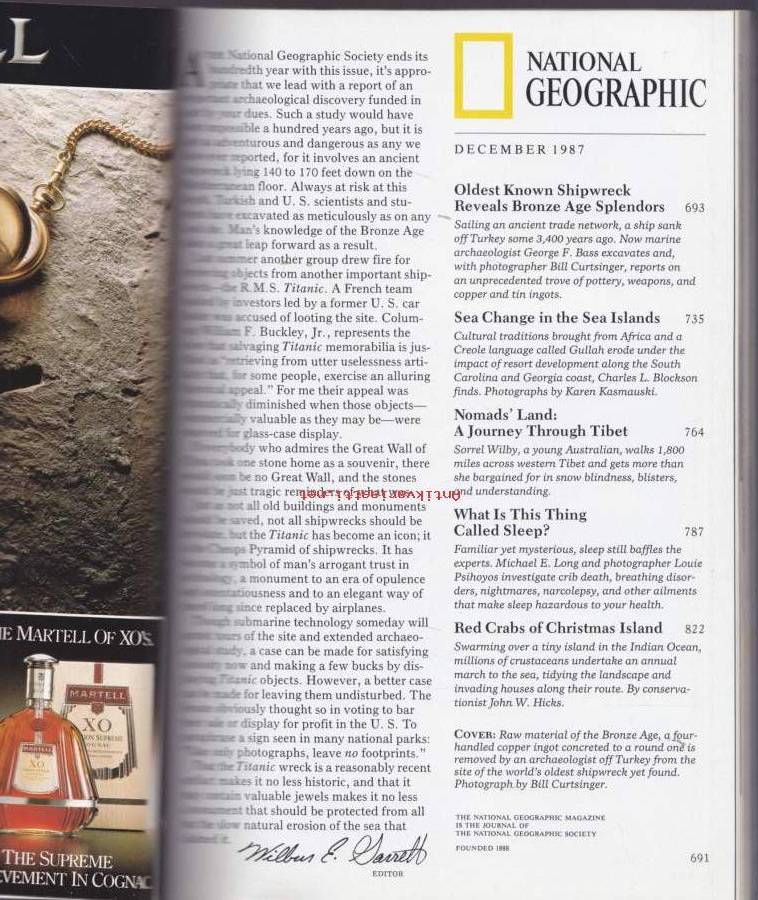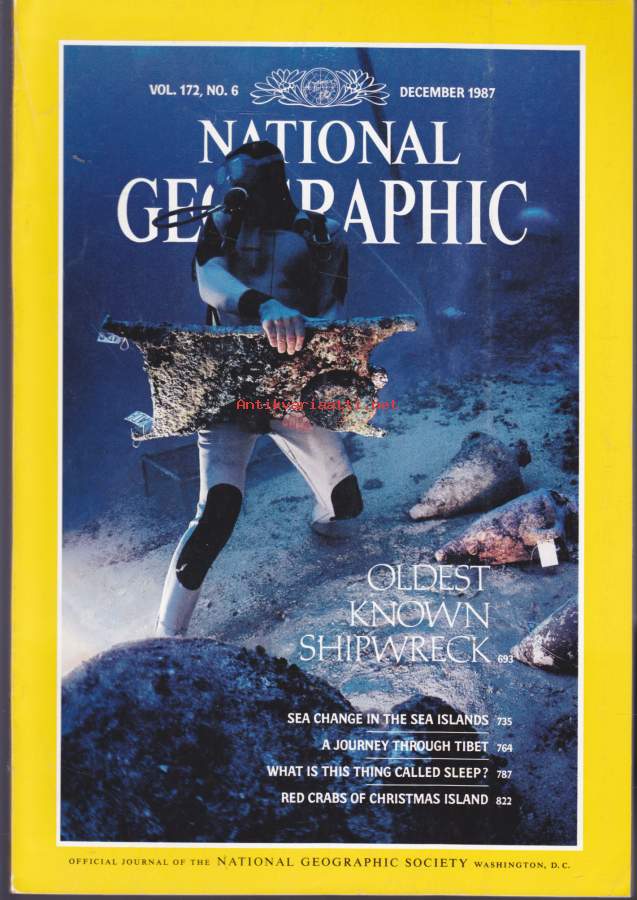 National Geographic - December 1987. Bronze Age Shipwreck - The Oldest Known. A Journey Through Tibet. Red Crabs of Christmas Island