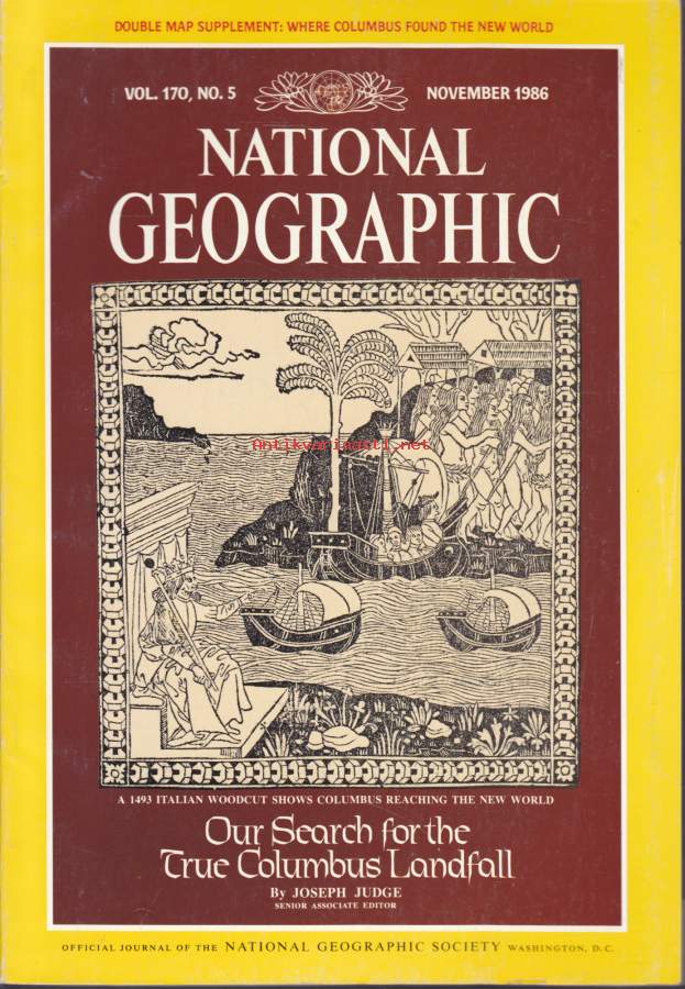 National Geographic - November 1986. Sharks at 2,000 feet. ICRC Humanitarian Work all over the World. Columbus - In search of the true Landfall.