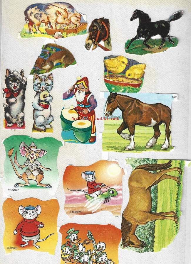 Sarjakuvahahmoja ja eläimiä n 14 kpl erä- kiiltokuva