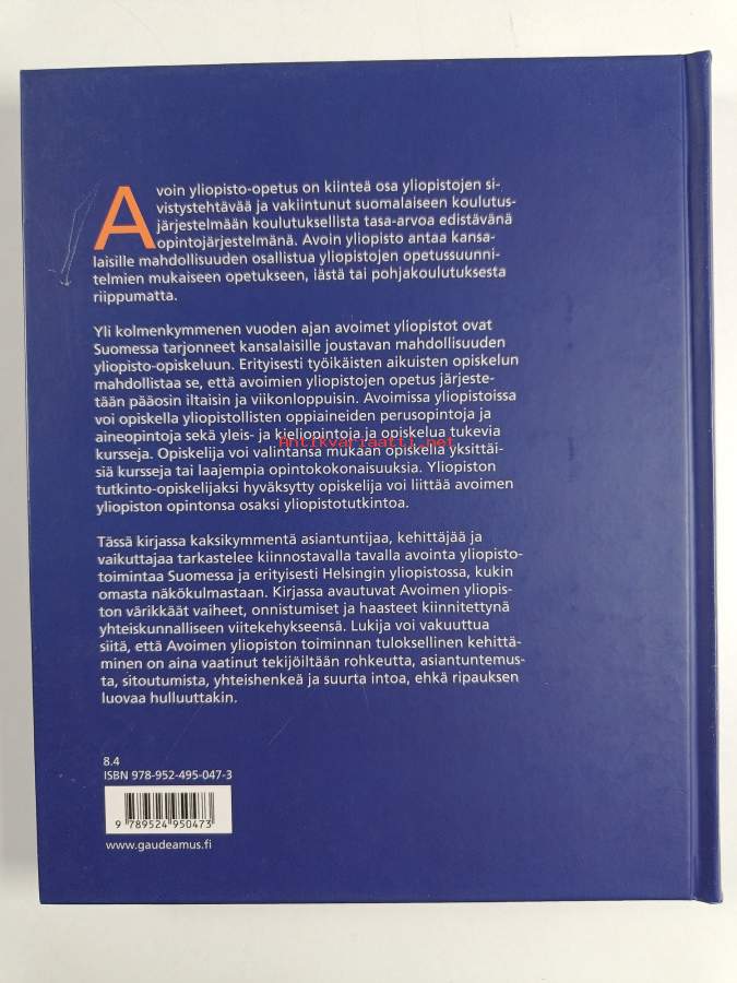 Muu(t) tekijä(t): Minna Herno, Tapio KosunenAsiasanat: historia, historiikit, korkeakouluopetus, opetus, tasa-arvo, yliopistot, kasvatushistoria, opiskelijat, opiskelu, korkeakouluopiskelu, korkea-asteen koulutus, aikuisopetus, aikuiskoulutus, aikuisopiskelu, avoin yliopisto, etäopiskelu, juhlajulkaisut, iltaopiskelu