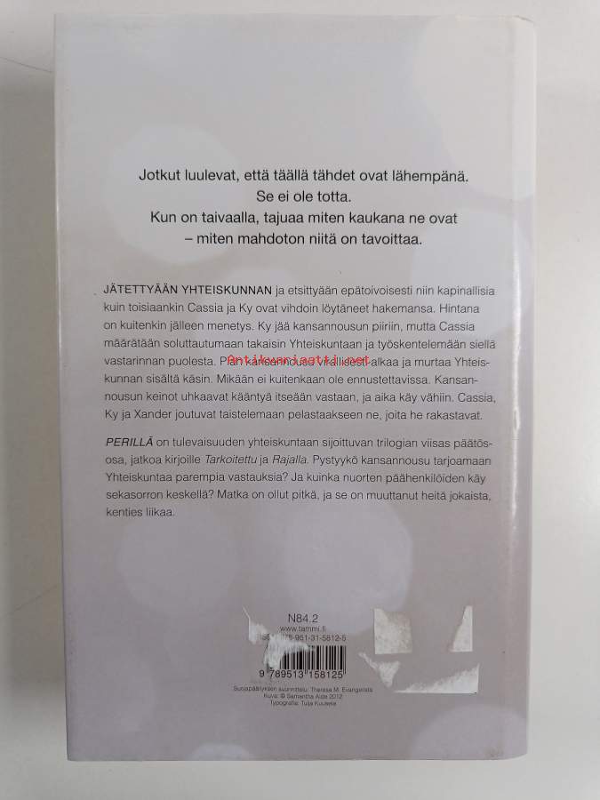 Hyvä. Hieman kulumaa, takana hintalapun jäämää, selkämyksessä hieman vinoutta. Kansipaperin kunto: jonkin verran kulumaa & tahraisuutta