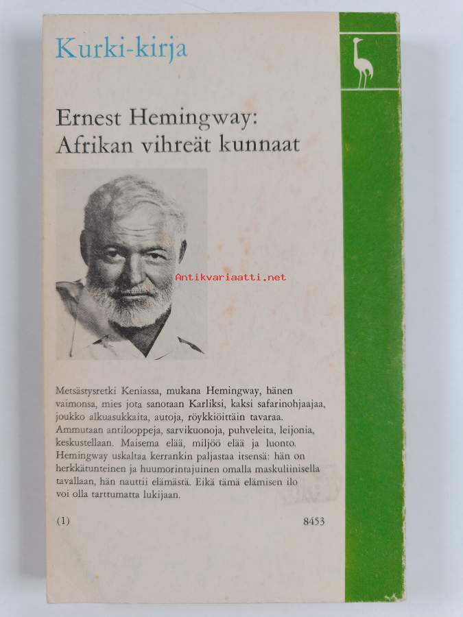 Muu(t) tekijä(t): Tauno TainioMerkinnät: omistajamerkintäSarja: Kurki-kirjaAlkuteos: Green hills of AfricaAsiasanat: metsästys, eräkirjat