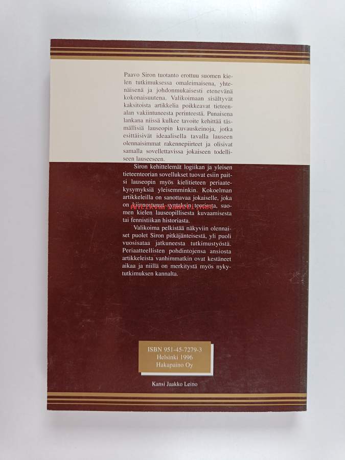 Muu(t) tekijä(t): Pentti LeinoAsiasanat: suomen kieli, tutkijat, tutkimushistoria, lauseoppi