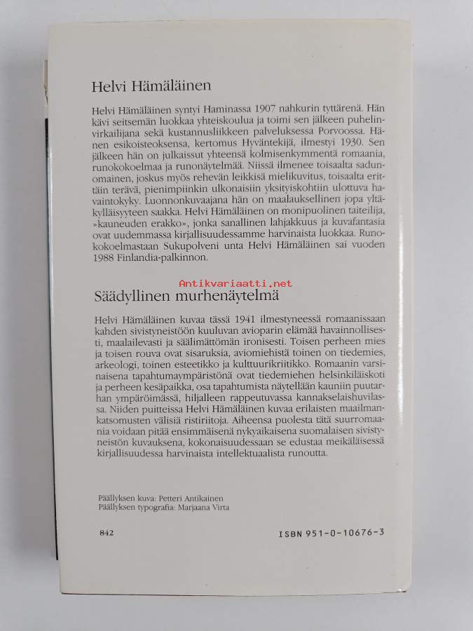 Hyvä. Hieman kulumaa kansissa, pienoista kolhua reunoilla ja kulmissa, selkämyksessä vinoutta. Kansipaperin kunto: joitain repeämiä/kulumaa