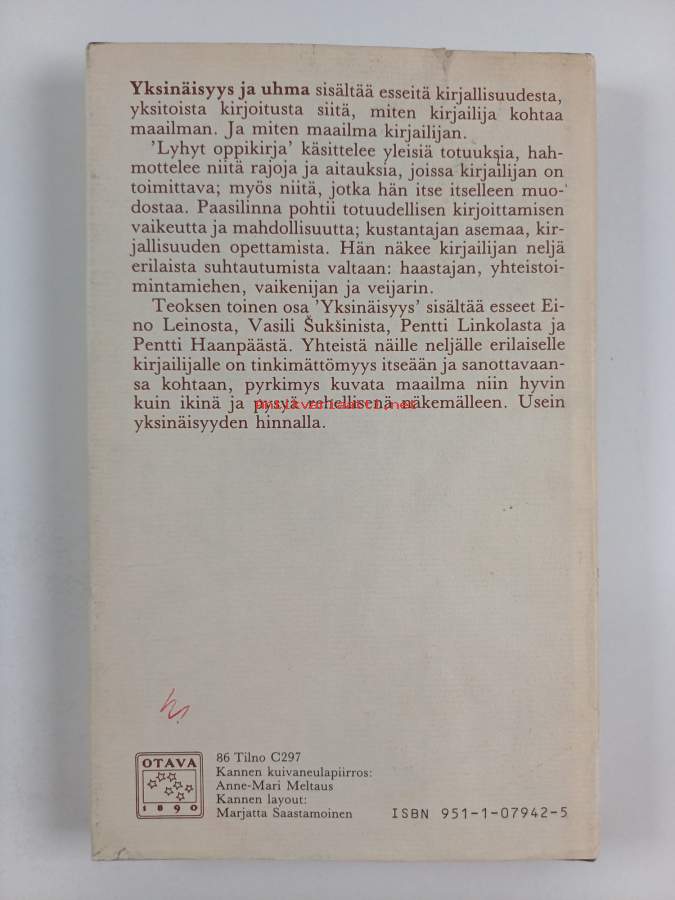 Yksinäisyys ja uhma : esseitä kirjallisuudesta