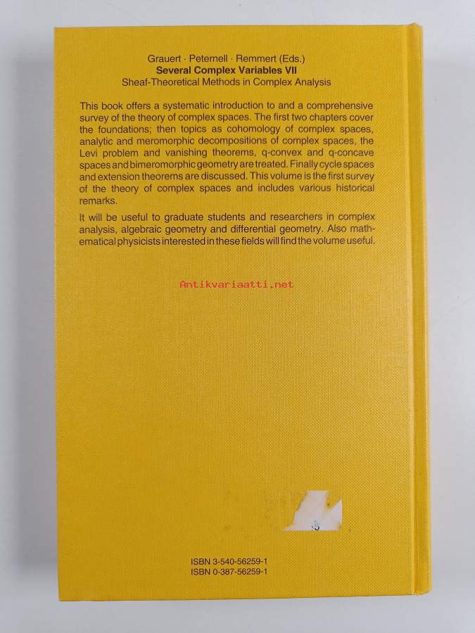 Muu(t) tekijä(t): Hans Grauert, Reinhold Remmert ym.Sarja: Several complex variables 7; Encyclopaedia of mathematical sciences 74Asiasanat: Functions of several complex variables, Sheaf theory