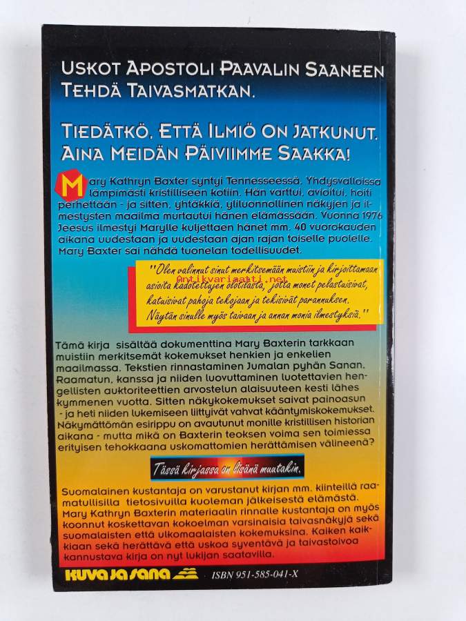 Merkinnät: omistajamerkintä leikattu pois etulehden ylälaidastaAlkuteos: A divine revelation of hellAsiasanat: kuolema, kuolemanjälkeinen elämä, taivas, Paratiisi