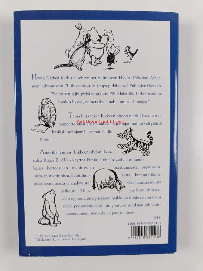 Muu(t) tekijä(t): Kersti Juva, Pirkko Biström ym.Merkinnät: omistajamerkintäAlkuteos: Winnie-the-Pooh on ManagementAsiasanat: johtaminen, liikkeenjohto