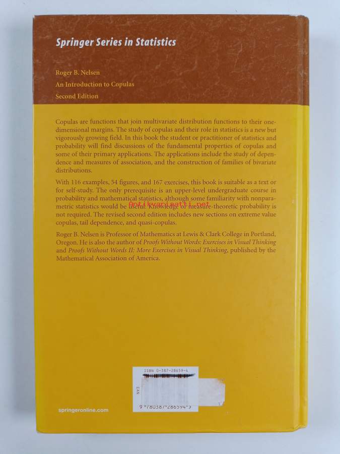Sarja: Springer series in statisticsAsiasanat: matemaattinen tilastotiede, tilastomenetelmät, statistiska metoder, matematisk statistik, Copulas (Mathematical statistics)