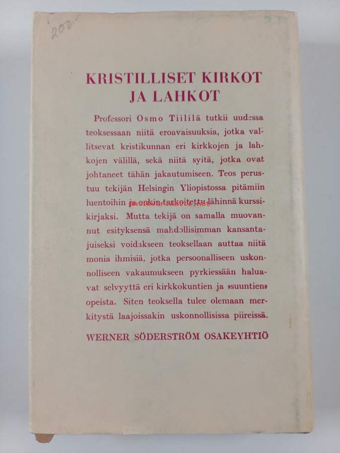 Kristilliset kirkot nykyisessä henkien taistelussa : kertomus arkkihiippakunnan synodaalikokousta varten lokak. 19-21 p. 1937/Kaila, Erkki,Otava 1937.
