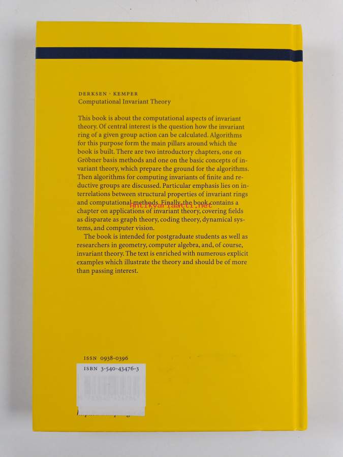 Muu(t) tekijä(t): Gregor KemperSarja: Encyclopaedia of mathematical sciences, Invariant theory and algebraic transfromation groups 130; Encyclopaedia of Mathematical Sciences 130