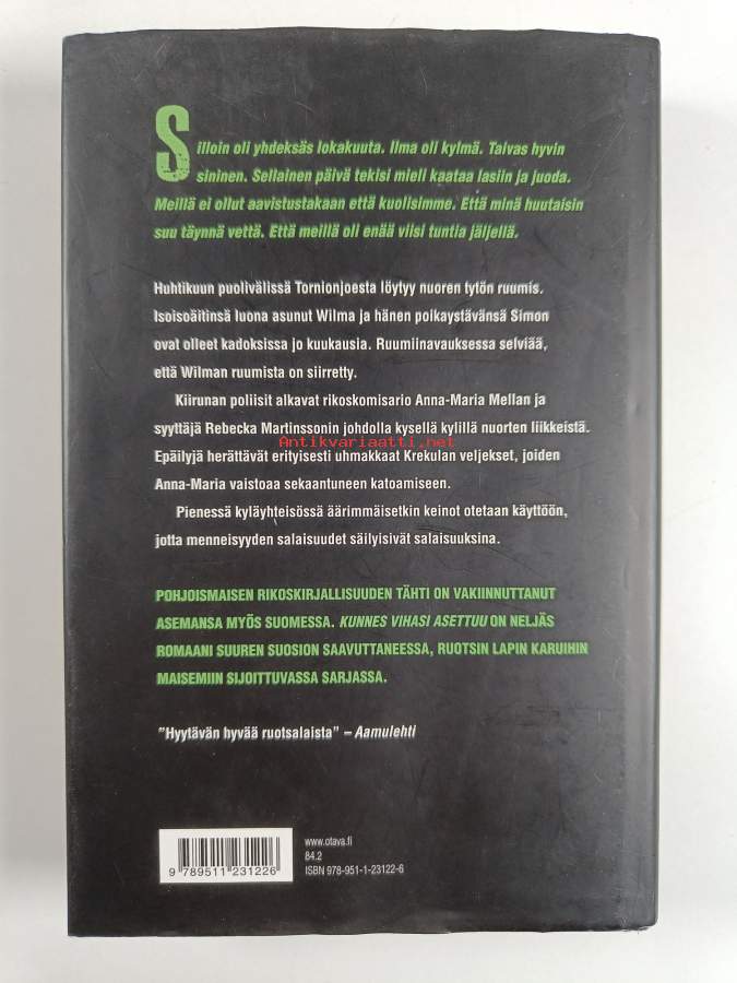 Hyvä. Pienoista kolhua kansissa, pienoista kulumaa kansissa, selkämyksessä hieman vinoutta. Kansipaperin kunto: pientä kulumaa