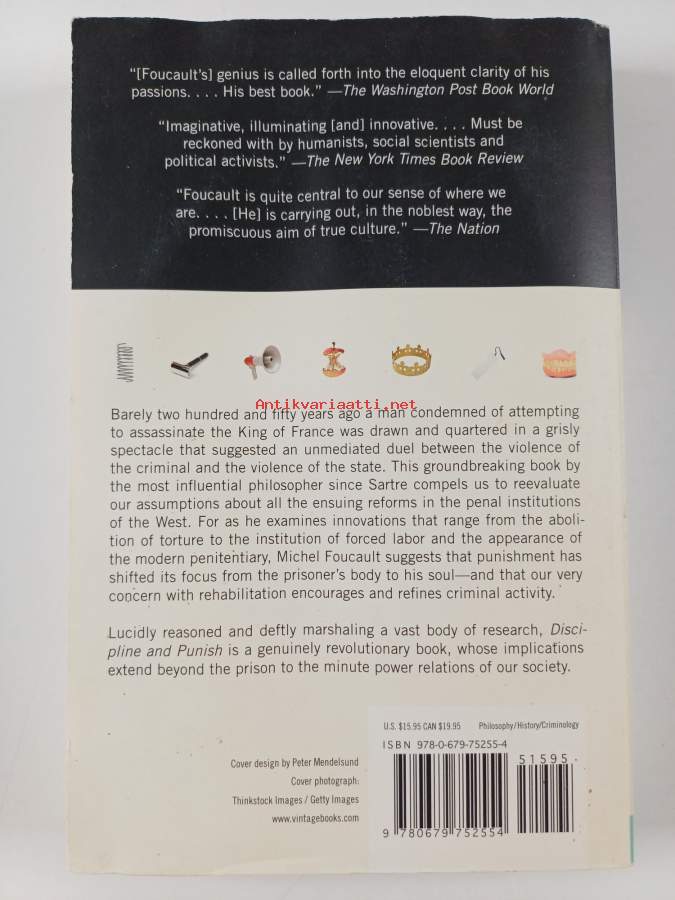 Muu(t) tekijä(t): Alan SheridanAlkuteos: Surveiller et punir.Asiasanat: vankilat, rangaistukset, rangaistuslaitokset, kuri, Prisons, fängelser, straff, Punishment, straffanstalter, disciplin, kurinpitorangaistus, Prison discipline, disciplinärt straff