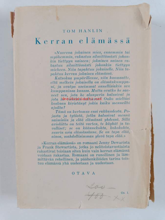 Hyvä. Pienoista kulumaa, selkämyksessä hieman vinoutta. Kansipaperin kunto: repeämiä/kulumaa