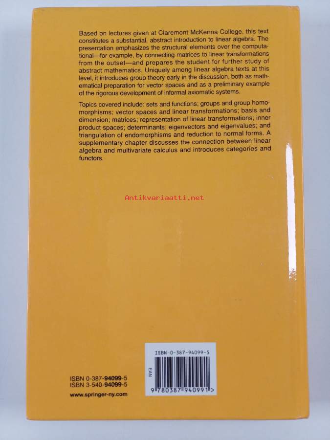Sarja: Undergraduate texts in mathematicsAsiasanat: lineaarialgebra, linjär algebra, Algebras, Linear
