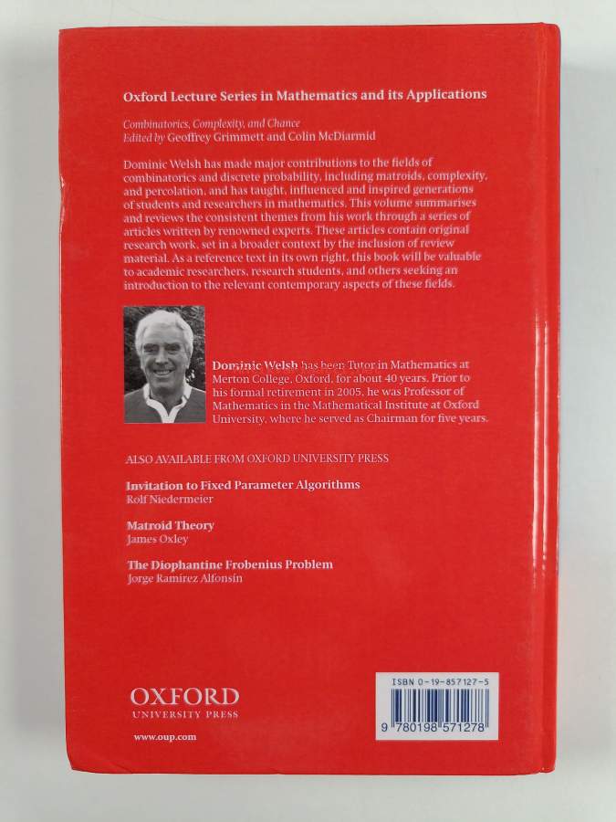 Combinatorics, complexity, and chance : a tribute to Dominic Welsh - Tribute to Dominic Welsh