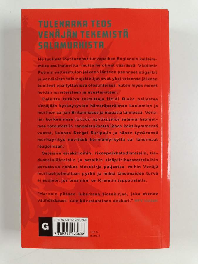 Muu(t) tekijä(t): Aura NurmiAlkuteos: From Russia with bloodAsiasanat: poliittinen historia, presidentit, toisinajattelijat, turvallisuuspalvelut, venäläiset, vallankäyttö, vakoilijat, poliittinen väkivalta, poliittinen murha, maanpako, salamurha, oligarkit