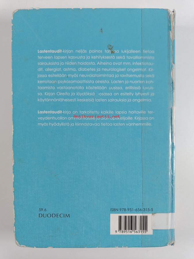 Muu(t) tekijä(t): Markku Heikinheimo, Jukka Rajantie ym.Asiasanat: taudit, diagnoosi, hoitomenetelmät, ravitsemus, nuoret, hoito, vastasyntyneet, lapset, lastentaudit, sairastuminen, sairaanhoito, kaltoinkohtelu, Pediatrics, Adolescent, Child, Infant, disease, sosiaalipediatria, lastentautioppi, lasten hoitotyö, Adolescent Medicine