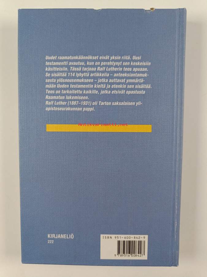 Muu(t) tekijä(t): Oili AhoMerkinnät: omistajamerkintä leikattu pois etulehden ylälaidastaAlkuteos: Neutestamentliches WörterbuchAsiasanat: sanakirjat, raamatuntulkinta, hakuteokset